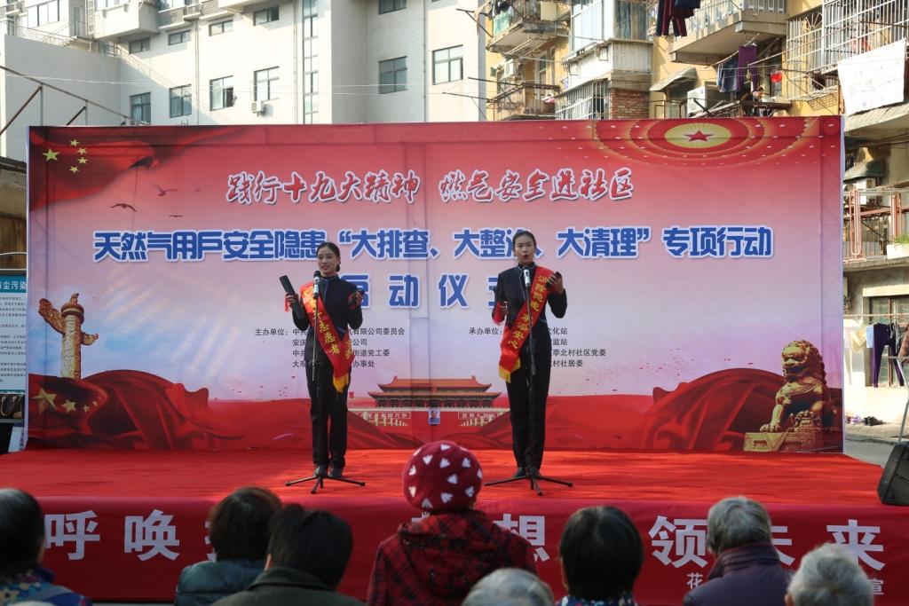 為認(rèn)真貫徹落實(shí)市住房城鄉(xiāng)建設(shè)委、安監(jiān)局、公安消防支隊(duì)三部門(mén)聯(lián)合發(fā)出的《關(guān)于開(kāi)展城區(qū)天然氣用戶安全隱患專項(xiàng)整治工作的通告》(下稱“專項(xiàng)整治通告”)精神,12月12日,針對(duì)全市民用天然氣客戶戶內(nèi)安全隱患“大排查、大整治、大清理”專項(xiàng)行動(dòng)啟動(dòng)儀式在我市花亭北村廣場(chǎng)舉行。這是迄今為止整改力度最大、涉及范圍最廣的一次燃?xì)獍踩[患集中大清理,也是安慶港華踏實(shí)踐行黨的“十九大精神”,推動(dòng)“十九大精神”在工作中落地生根的具體體現(xiàn)。