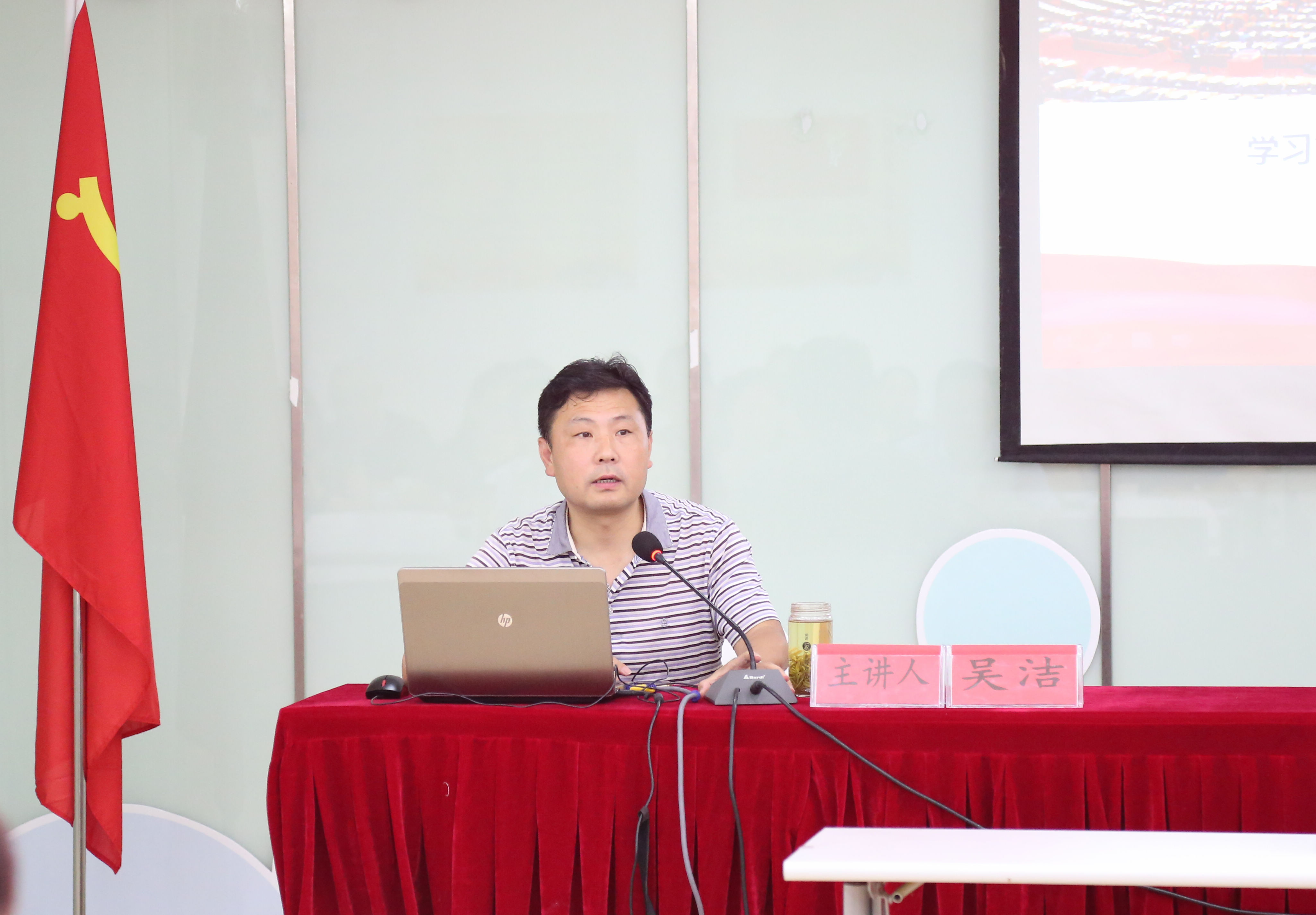 授課中,吳潔教授以“學(xué)習(xí)貫徹習(xí)近平新時(shí)代中國(guó)特色社會(huì)主義思想和黨的十九大精神”為主題,從深刻領(lǐng)會(huì)黨的十九大主題及主要成果、習(xí)近平新時(shí)代中國(guó)特色社會(huì)主義思想的歷史地位和豐富內(nèi)涵、十八大以來黨和國(guó)家發(fā)生的歷史性變革、新時(shí)代的社會(huì)主要矛盾新變化、全面建設(shè)現(xiàn)代化強(qiáng)國(guó)的戰(zhàn)略部署、堅(jiān)定不移全面從嚴(yán)治黨的重大部署等六個(gè)方面,對(duì)習(xí)近平新時(shí)代中國(guó)特色社會(huì)主義思想及黨的十九大精神作了系統(tǒng)、全面的解讀與闡述。吳教授結(jié)合自己的學(xué)習(xí)體會(huì),運(yùn)用了大量生動(dòng)的數(shù)據(jù)和事例,語言通俗易懂,邏輯清晰有秩,不斷引起在場(chǎng)黨員的共鳴,會(huì)上反響熱烈。