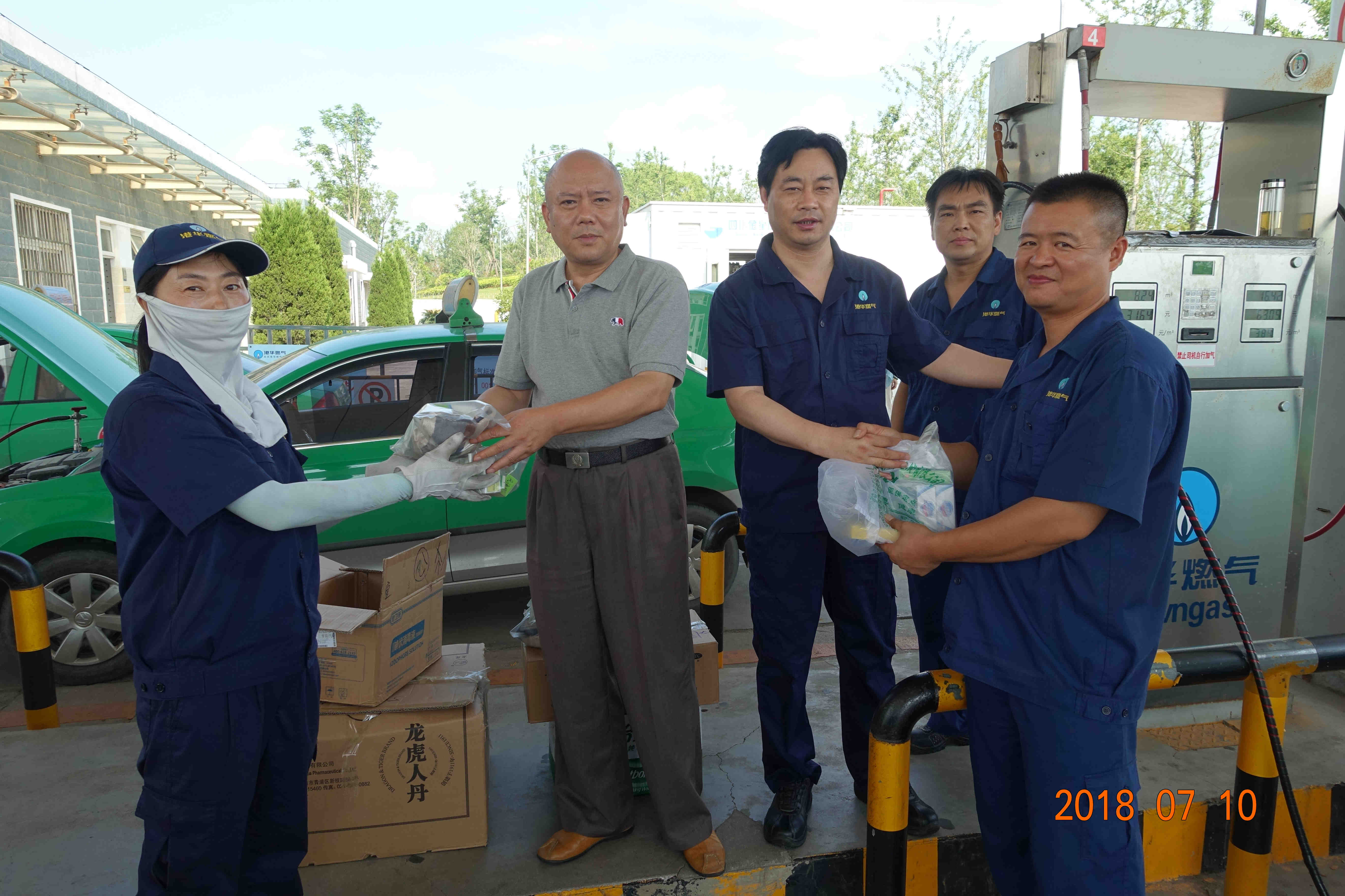 為切實(shí)做好員工夏季防暑降溫工作,保障工作人員的身體健康, 7月10日,安慶港華董事長何族興、總經(jīng)理謝業(yè)清在工會(huì)主席孫曉偉的陪同下,冒著烈日高溫分別走訪集賢關(guān)加氣站、石化菱北管道改造小區(qū),看望在高溫酷暑下的一線工作人員,并送上了防暑降溫慰問用品。