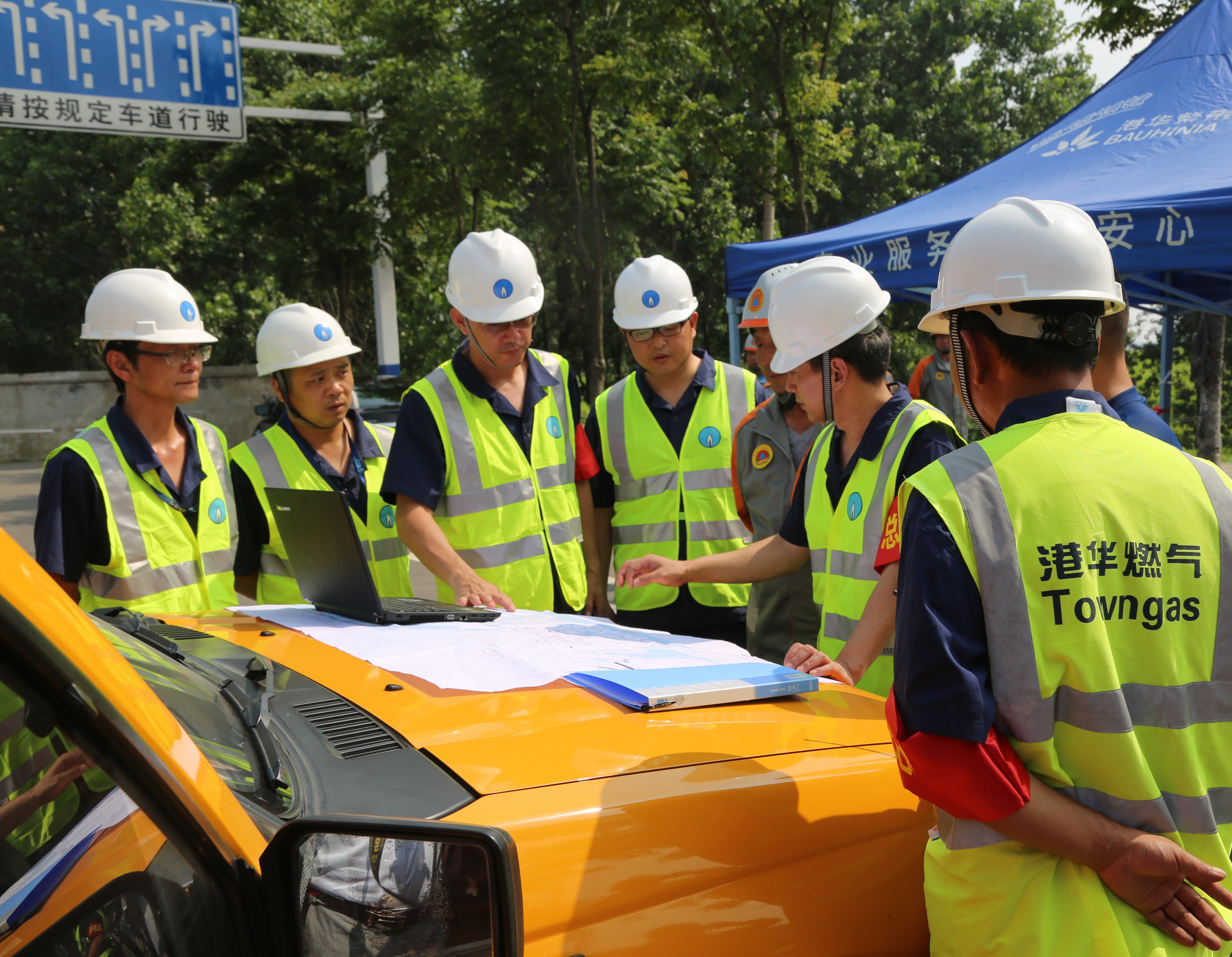 15時演習正式開始,接到報警后,消防、交警、港華及人防搶險人員于10分鐘內(nèi)先后趕至現(xiàn)場,消防人員立即對泄漏區(qū)域進行滅火及水霧稀釋。交警人員對泄漏區(qū)域路段進行交通封閉。市人防協(xié)同消防、交警、港華燃氣專業(yè)搶險隊設立現(xiàn)場聯(lián)合搶險指揮部,迅速組織人員對現(xiàn)場進行緊急疏散、警示警戒、交通導行、燃氣濃度檢測等一系列應急處置措施。在初步控制事發(fā)現(xiàn)場后,經(jīng)現(xiàn)場指揮部研判,決定關閉潛江路地下燃氣進氣閥門并使用防爆風機加速燃氣濃度的稀釋。經(jīng)過有效處置,現(xiàn)場的燃氣泄漏得到控制,周邊空氣中的燃氣濃度逐漸將為0%PPM。15時35分,搶修人員進入管道受損點,對受損的PE200燃氣管道進行修復。經(jīng)過24分鐘的緊張搶修作業(yè),成功完成管道修復。16時,指揮部下令打開燃氣地下管網(wǎng)進氣閥,恢復燃氣供應。16時05分,經(jīng)檢測修復點無燃氣數(shù)值,安慶港華迅速組織客服及市務部相關人員進行用戶端的恢復供氣。16時20分,演習圓滿結(jié)束,現(xiàn)場指揮部對演練進行指導點評,而后,參演人員快速恢復現(xiàn)場、有序撤離。