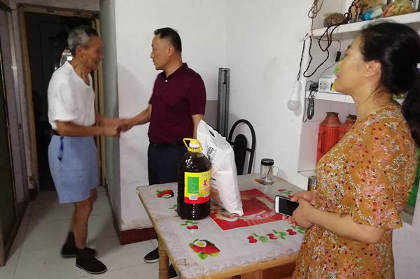 在社區(qū)工作人員陪同下,何族興來到社區(qū)獨(dú)居老黨員田國英家走訪慰問,與老人親切交談,關(guān)切詢問他的身體和生活狀況,查看他家燃?xì)庠O(shè)施安全狀況,并叮囑他高溫季節(jié)注意防暑,有困難及時聯(lián)系。隨后,何族興一行還來到全國最美家庭倪明華家,詢問家中生活近況,并送上糧油等生活慰問品。