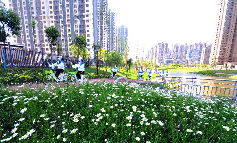 當(dāng)天上午,60余名安慶港華藍(lán)焰義工隊(duì)員身穿統(tǒng)一服裝,在港華綠地客戶中心外進(jìn)行環(huán)保宣誓及簽名儀式,并向廣大市民發(fā)出共同參與綠色環(huán)保低碳生活的邀請。隨后活動參與者排成整齊隊(duì)列,集體騎共享單車至安慶市體育中心,全程4千米。騎行中,整齊有序的隊(duì)伍和青春活力的身影引來不少路人駐足觀看與詢問,義工隊(duì)員們也在騎行間隙,積極向路人散發(fā)環(huán)保知識及安全用氣常識手冊,宣傳節(jié)能減排環(huán)保理念,強(qiáng)化市民安全用氣意識。