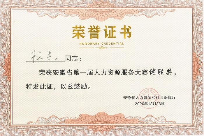 在近日成功舉辦的安徽省第一屆人力資源服務大賽上,安慶港華員工程堯成功從全省153名選手脫穎而出,奪得優(yōu)勝獎。