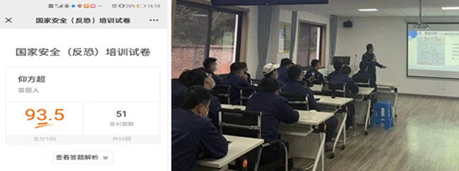 公司以部門、組別為單位,組織全體員工認(rèn)真學(xué)習(xí)《反恐怖主義法》《刑法》《國家安全法》等相關(guān)法律法規(guī),并開展線上反恐理論知識(shí)答題考核,進(jìn)一步鞏固提升全員安全反恐防爆知識(shí)和能力。