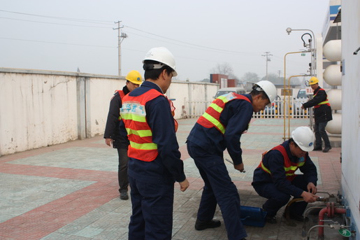 12月6日下午15時(shí)50分,安慶港華燃?xì)饧t關(guān)CNG加氣站內(nèi)響起急促燃?xì)鈭?bào)警器聲。緊接著,加氣工迅速關(guān)閉加氣機(jī)應(yīng)急球閥停止加氣,禁止車(chē)輛移動(dòng),并大聲呼喊:“漏氣了,大家快撤到站外安全地帶?!?/span>15:52分,站內(nèi)司乘人員在加氣工的指導(dǎo)下,全部撤到站外,并在站外拉起警戒線(xiàn)。16:00,站內(nèi)搶修人員通過(guò)對(duì)泄漏現(xiàn)場(chǎng)的初步判斷泄漏來(lái)自2#壓縮機(jī)處,立即停止壓縮機(jī)工作。如此同時(shí),當(dāng)班班長(zhǎng)立即把現(xiàn)場(chǎng)情況向站長(zhǎng)報(bào)告。16:10分,接到指令的站、部門(mén)負(fù)責(zé)人帶領(lǐng)部門(mén)應(yīng)急行動(dòng)小組趕到現(xiàn)場(chǎng)。經(jīng)過(guò)各行動(dòng)小組緊張、有序的處置,僅用20分鐘的時(shí)間就成功檢查并消除了泄漏——2#壓縮機(jī)法蘭處。16:32,現(xiàn)場(chǎng)指揮發(fā)出:“解除警戒,演練結(jié)束”指令。