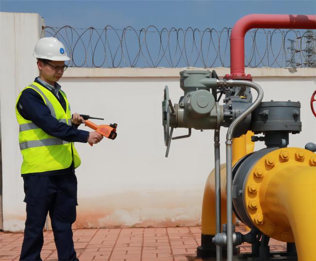 12時(shí)08分,置換作業(yè)開(kāi)始。確定管道內(nèi)氣體成分比例符合要求后,置換組緩慢開(kāi)啟1號(hào)閥門(mén),向管網(wǎng)內(nèi)輸送天然氣,并由調(diào)度中心對(duì)管網(wǎng)內(nèi)壓力情況跟進(jìn)、監(jiān)測(cè)。正午時(shí)分,驕陽(yáng)似火,檢測(cè)人員們一邊吃著盒飯一邊堅(jiān)守施工現(xiàn)場(chǎng)觀測(cè)數(shù)據(jù)。終于,14時(shí)16分,現(xiàn)場(chǎng)調(diào)度的對(duì)講機(jī)內(nèi)傳來(lái)放散塔檢測(cè)人員的聲音:“經(jīng)檢測(cè),管網(wǎng)內(nèi)燃?xì)夂恳堰_(dá)99.7%,置換合格?!?