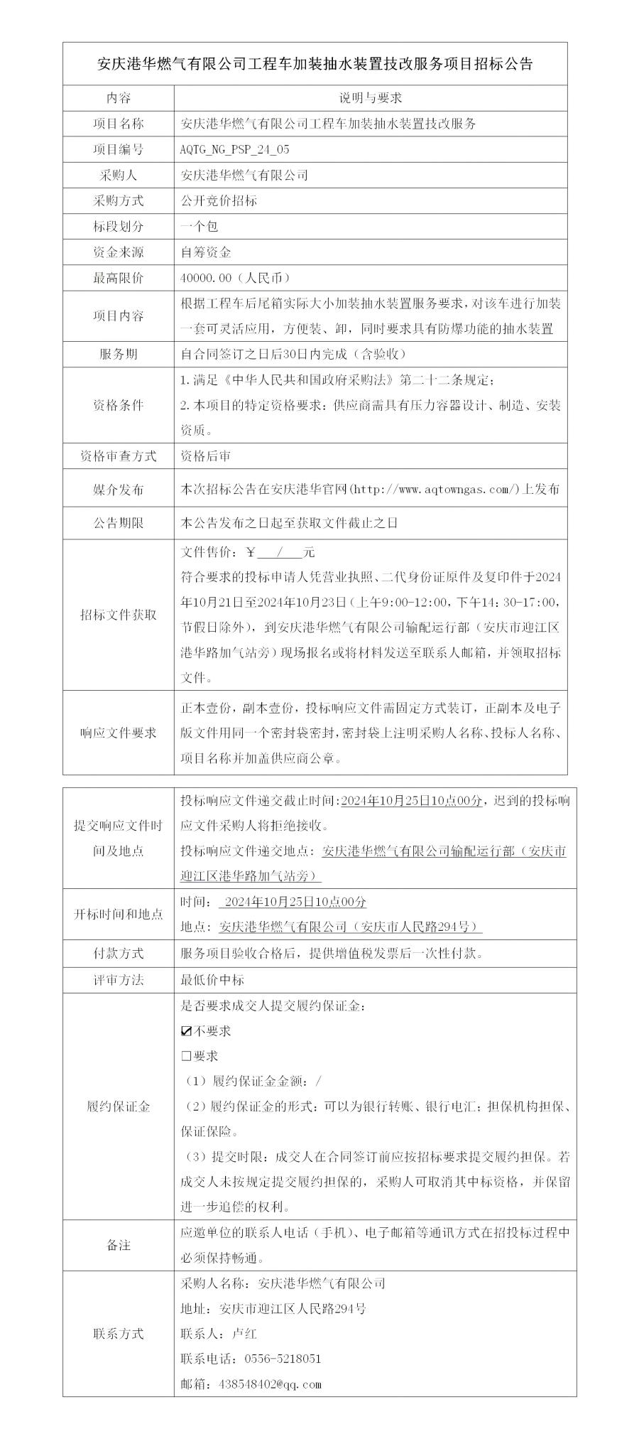安慶港華燃?xì)庥邢薰竟こ誊嚰友b抽水裝置技改服務(wù)項(xiàng)目招標(biāo)公告