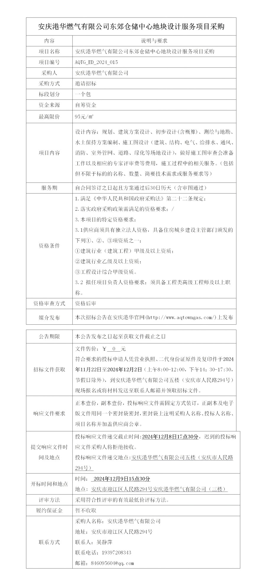 安慶港華燃?xì)庥邢薰緰|郊倉儲中心地塊設(shè)計服務(wù)項目采購