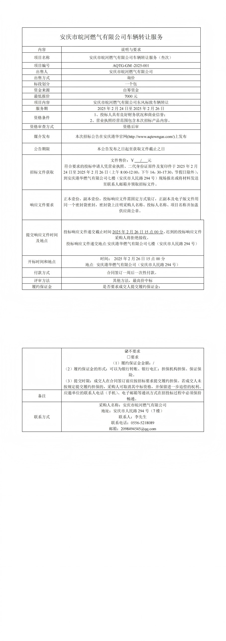 安慶市皖河燃?xì)庥邢薰拒囕v轉(zhuǎn)讓服務(wù)