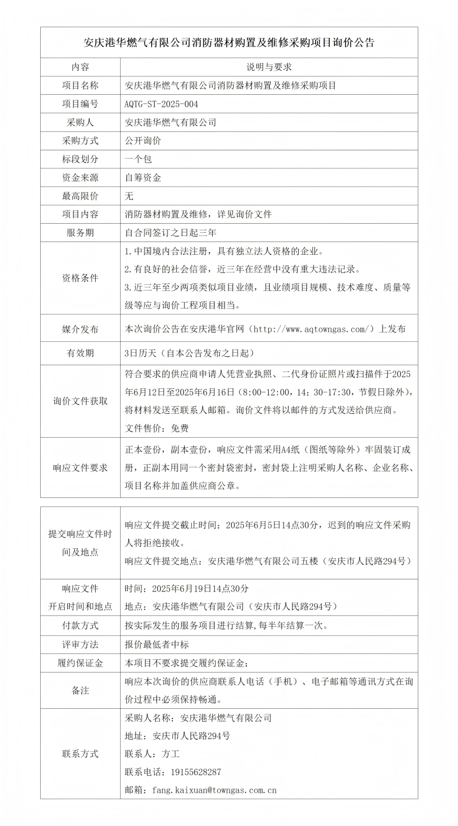 安慶港華燃?xì)庥邢薰鞠榔鞑馁?gòu)置及維修采購(gòu)項(xiàng)目詢價(jià)公告
