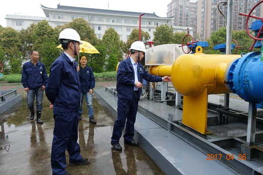 4月6日,公司總經(jīng)理謝業(yè)清率領(lǐng)運(yùn)行副總、風(fēng)險(xiǎn)、生產(chǎn)調(diào)度部門負(fù)責(zé)人冒雨對加氣站、門站、物料倉庫實(shí)施安全檢查。這是4月5日謝總上任伊始即進(jìn)行的首次安全檢查,也是公司新推行“三級”安全檢查制度的首輪總經(jīng)理檢查。