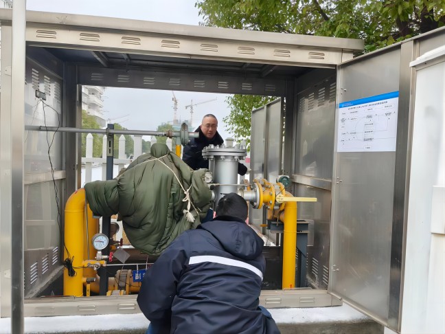 保障輸配勤維護(hù)。為保障低溫雨雪天氣下全市生產(chǎn)生活穩(wěn)定用氣,場站運(yùn)行工高頻次檢查各重要設(shè)備運(yùn)行情況,細(xì)致排查安全問題,一絲不茍確保關(guān)鍵環(huán)節(jié)處于良好運(yùn)行狀態(tài);巡線探漏人員頂風(fēng)冒雪,重點(diǎn)加大了人員密集區(qū)域及民生保障關(guān)鍵點(diǎn)的燃?xì)夤芫W(wǎng)巡查探漏,并對(duì)易受低溫影響的管道、閥井、調(diào)壓設(shè)備及時(shí)采取包裹棉被、排水等防凍措施。