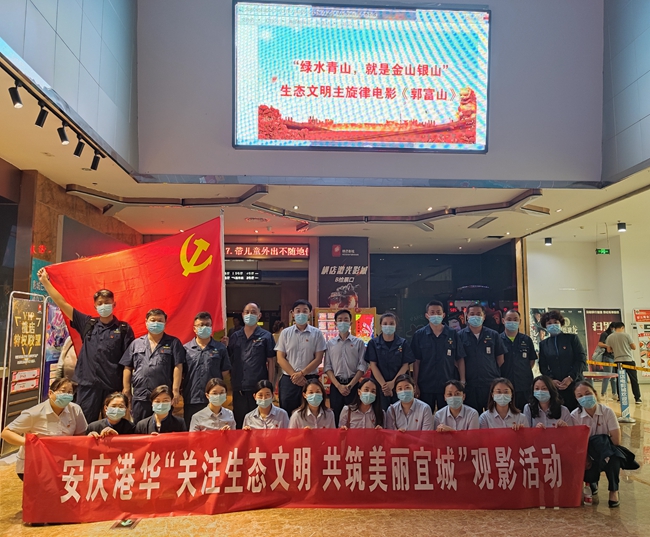 為貫徹落實習近平生態(tài)文明思想,樹立鞏固廣大黨員生態(tài)文明發(fā)展理念,營造全社會植綠愛綠護綠興綠的良好氛圍,5月14日,安慶港華以“關注生態(tài)文明 共筑美麗宜城”為主題,組織公司黨員代表開展共同觀看生態(tài)主旋律電影《郭富山》。